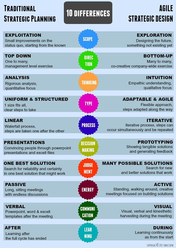 Als je van inzichten onder de vorm van plaatjes houdt, dit is er eentje om te koesteren. Vergelijking tussen klassiek strategisch denken en de ‘agile’ manier van Design Thinking. De beste manier om op een organisatie af te stappen en hen mee te krijgen in een begeleidingstraject, waar je ook heen wil…