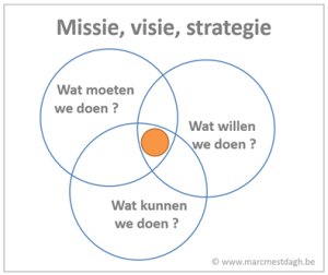 Om die reden gebruik ik als adviseur ook graag schema’s en grafieken om dingen ‘behapbaar’ te maken, iets wat binnen een omgeving van tijdschaarste wel gesmaakt wordt. Zo gebruik ik al een tijdje een heel eenvoudig schema als het over de oefening rond missie, visie en strategie gaat. Iets waar iedereen het over heeft, onder meer dankzij de Start with Why en de Golden Circle van Simon Sinek, volgens Engelfriet evenwel zonder dat er ook maar enig bewijs is dat bedrijven die zijn advies volgen succesvoller zouden zijn dan bedrijven die dat niet doen.
