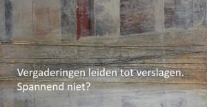 Ik zit in veel vergaderingen, maak zelf verslagen of krijg die achteraf toegestuurd. En heel vaak vraag ik me dan af of die tijdsbesteding wel nuttig was. Het zelf opmaken ervan maar ook het lezen van andermans verslagen. Gebeurt daar effectief iets mee: worden die gelezen, of enkel gescreend op naam, om te kijken waar men ter sprake komt met een statement of het al of niet bewust nemen van een engagement? Voor alle duidelijkheid: ik heb het hier niet over ‘woordelijk genotuleerde’ verslagen zoals in het parlement, officiële getuigenissen of andere formele verslagen maar vooral over verslagen die eerder een ‘operationele’ doelstelling hebben, of zouden moeten hebben. Denk maar aan vergaderingen van bestuursorganen, directiecomités, teamvergaderingen…